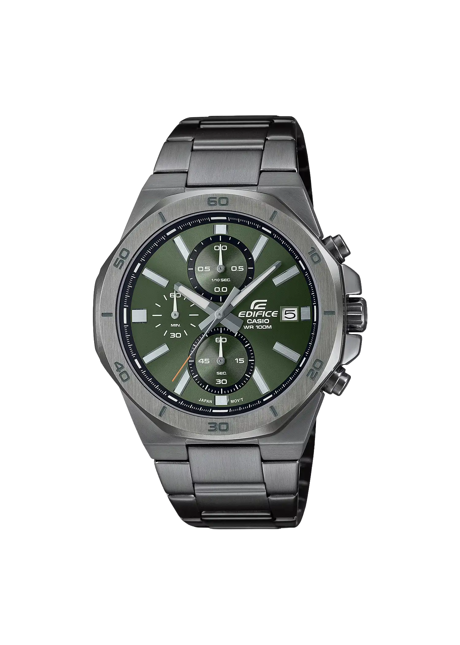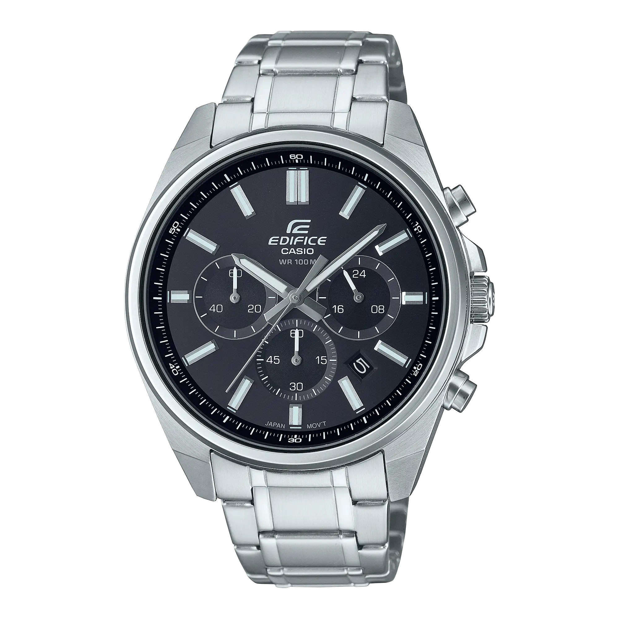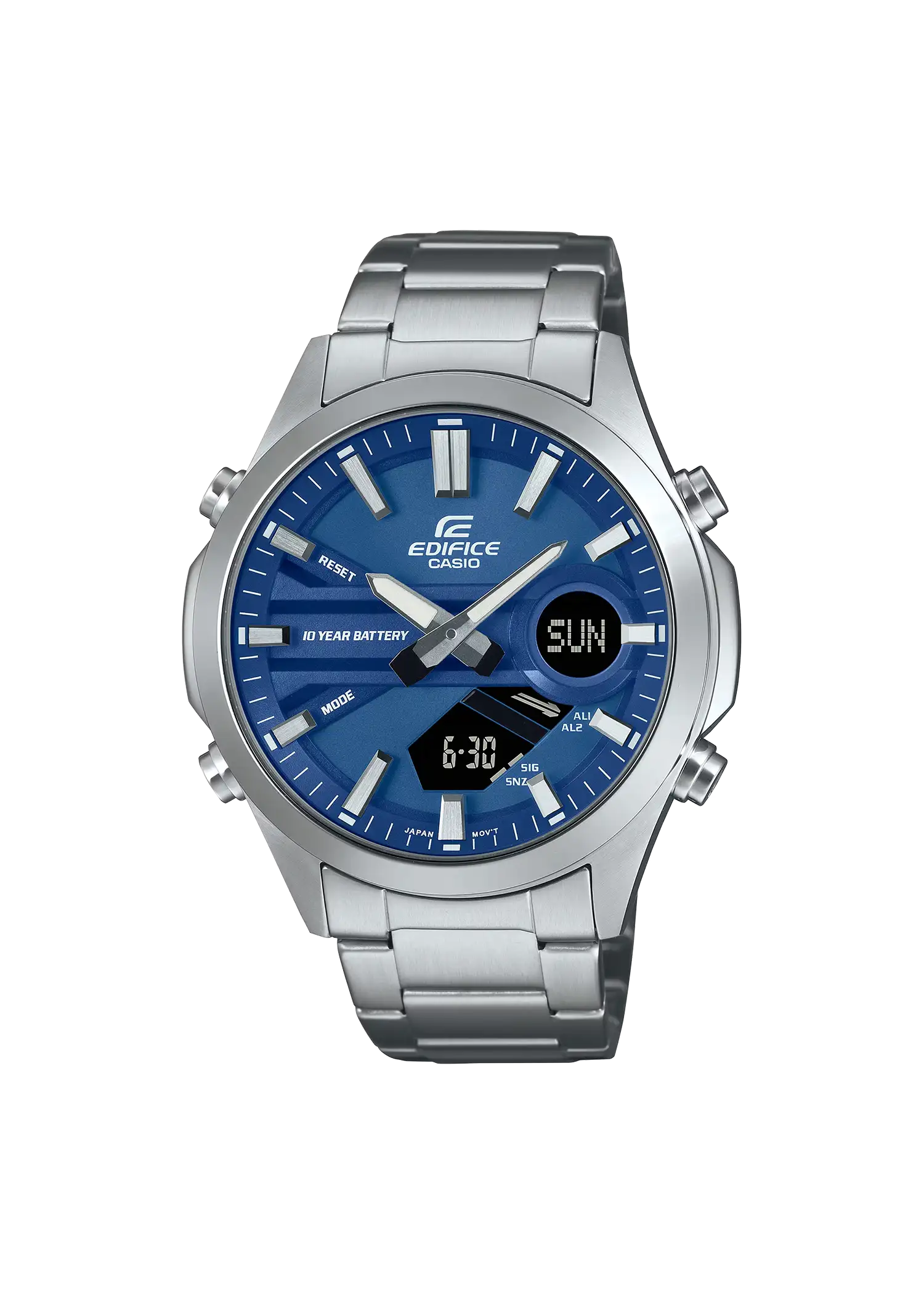 ضبط الوقت المنتظم: تناظري: 3 عقارب (ساعة، دقيقة، ثانية)، 3 أقراص (ساعة توقيت 1/10 ثانية، دقائق ساعة توقيت، ثواني ساعة توقيت)